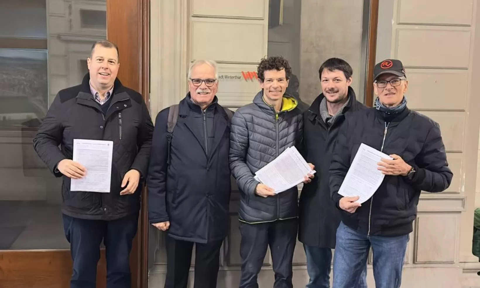 Philipp Angele, Stadtparlamentarier, Mitglied Stadtbaukommission; Jan Ehrbar, Präsident SVP Seen; Marco Graf, Präsident SVP Winterthur; René Isler, Kantonsrat, Vizepräsident SVP Seen; Walter Isler, Stadtparlamentarier, Mattenbach; Claudio Kuhn, Vizepräsident SVP Altstadt-Mattenbach; Marc Wäckerlin, Stadtparlamentarier, Seen; Pascal A. Werner, Präsident SVP Oberwinterthur, Stadtparlamentarier, Wirt Restaurant Rössli Seen; Manuel Zanoni, Vizepräsident SVP Winterthur, Vorstand SVP Seen.
